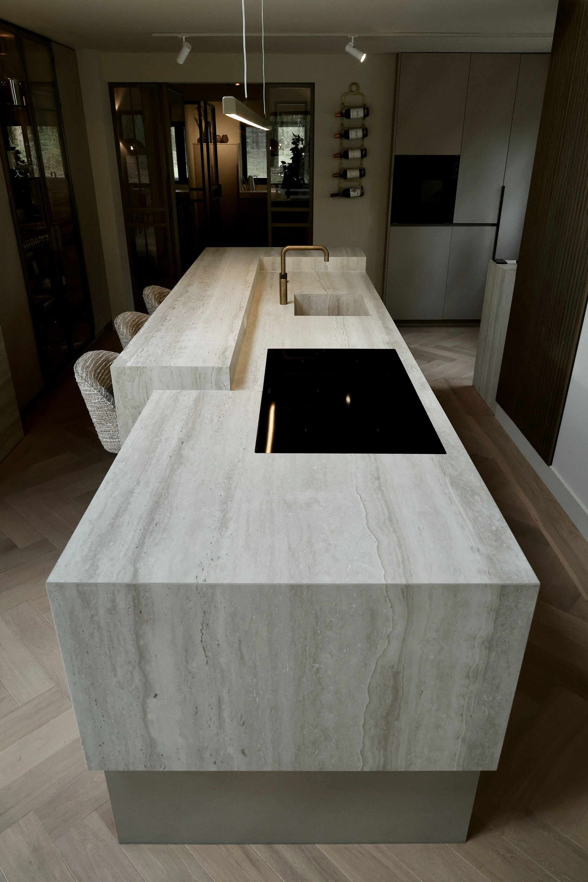Verscholen in de bossen, een oogstrelend maatwerk project met keramische slabs.