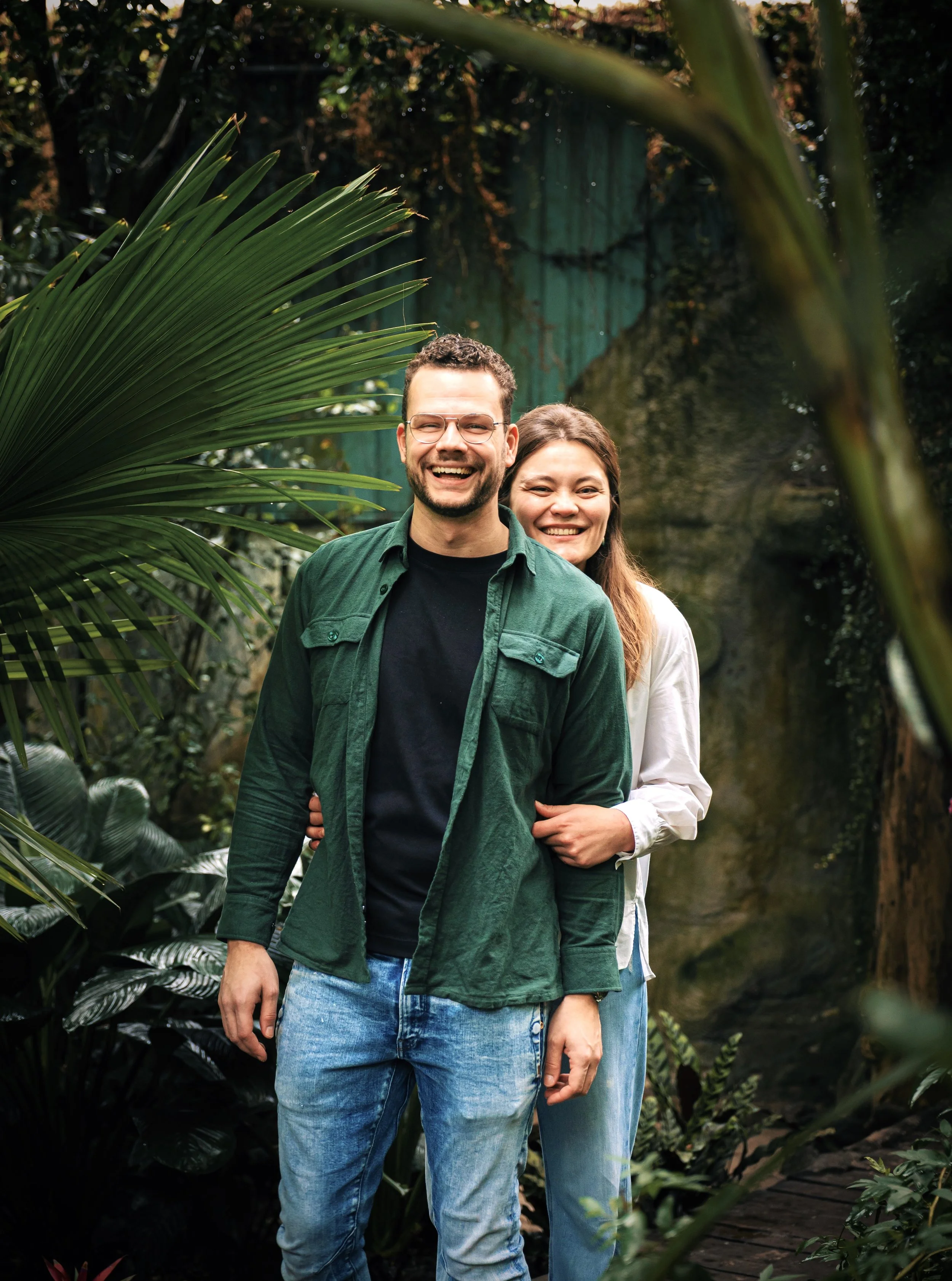 Portretfotografie Liefde in de spotlights Get in touch Liefde in de jungle Locatie? Pantropica. KlantThomas & EsmeeJaar2025 - 02